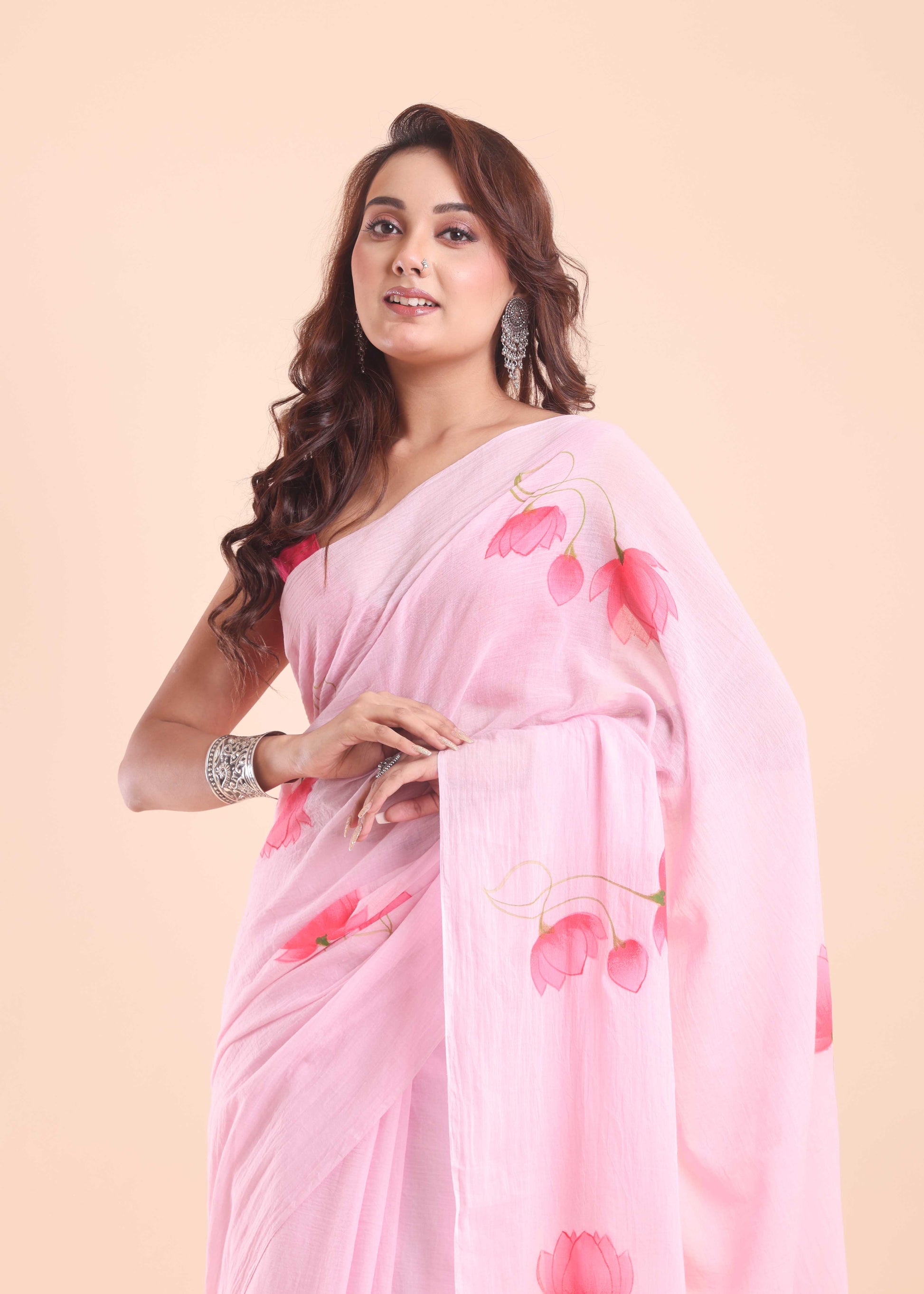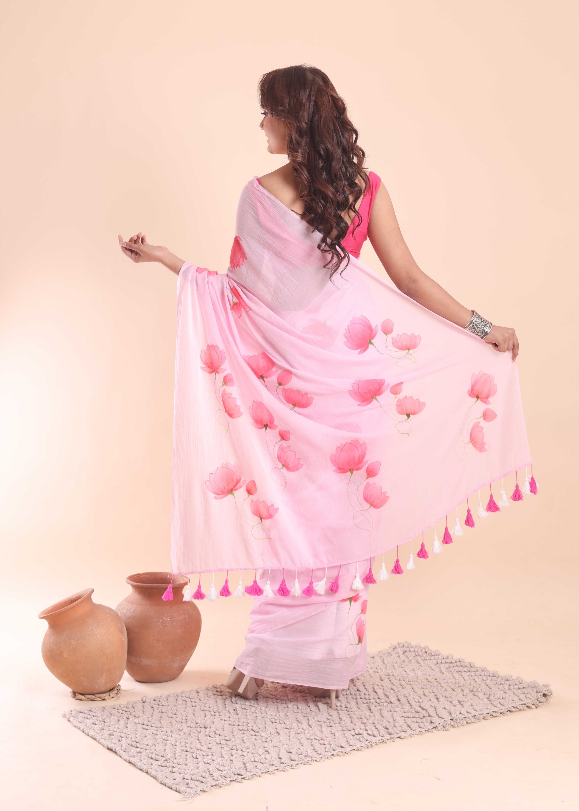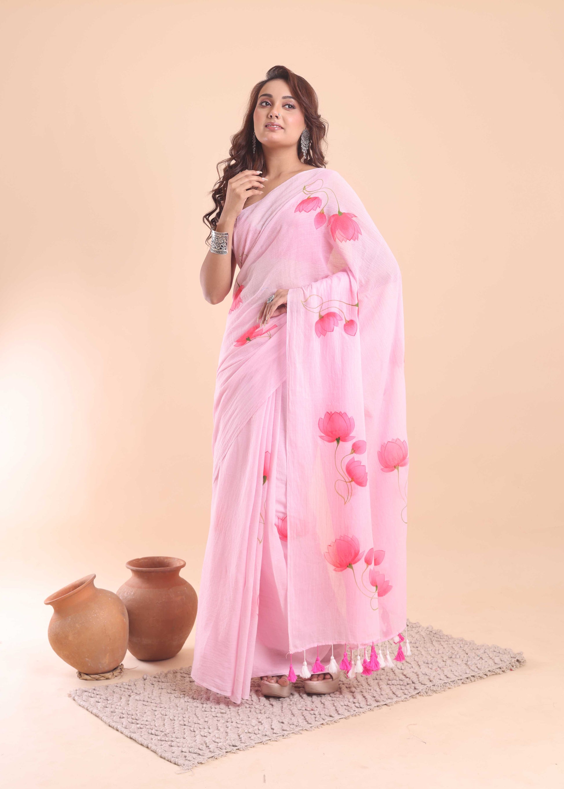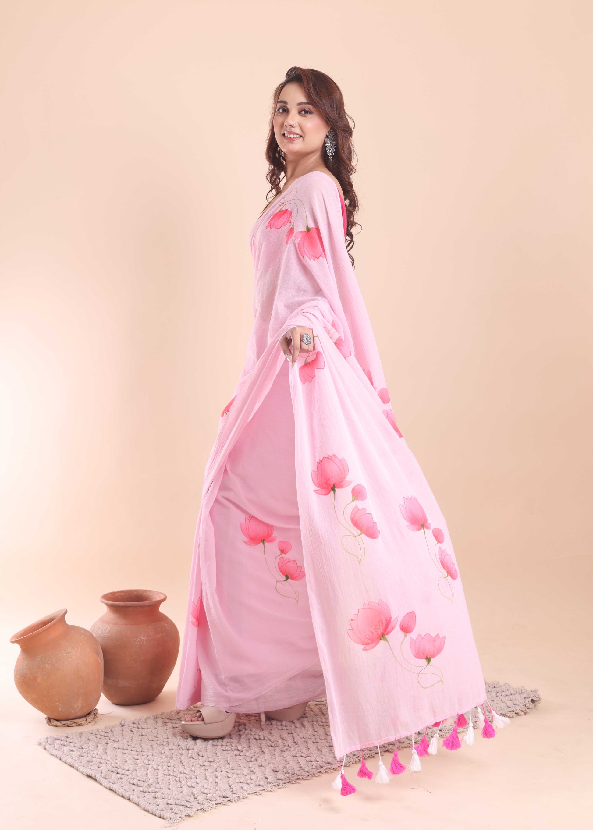 Float through your day in the sheer softness of Shaaj Calcutta’s mulmul cotton saree. Crafted from the softest cotton, this drape is feather-light on the skin and adorned with hand-drawn artistry that speaks of quiet elegance and soul. Perfect for brunches, poetry walks, or simply lounging in style.