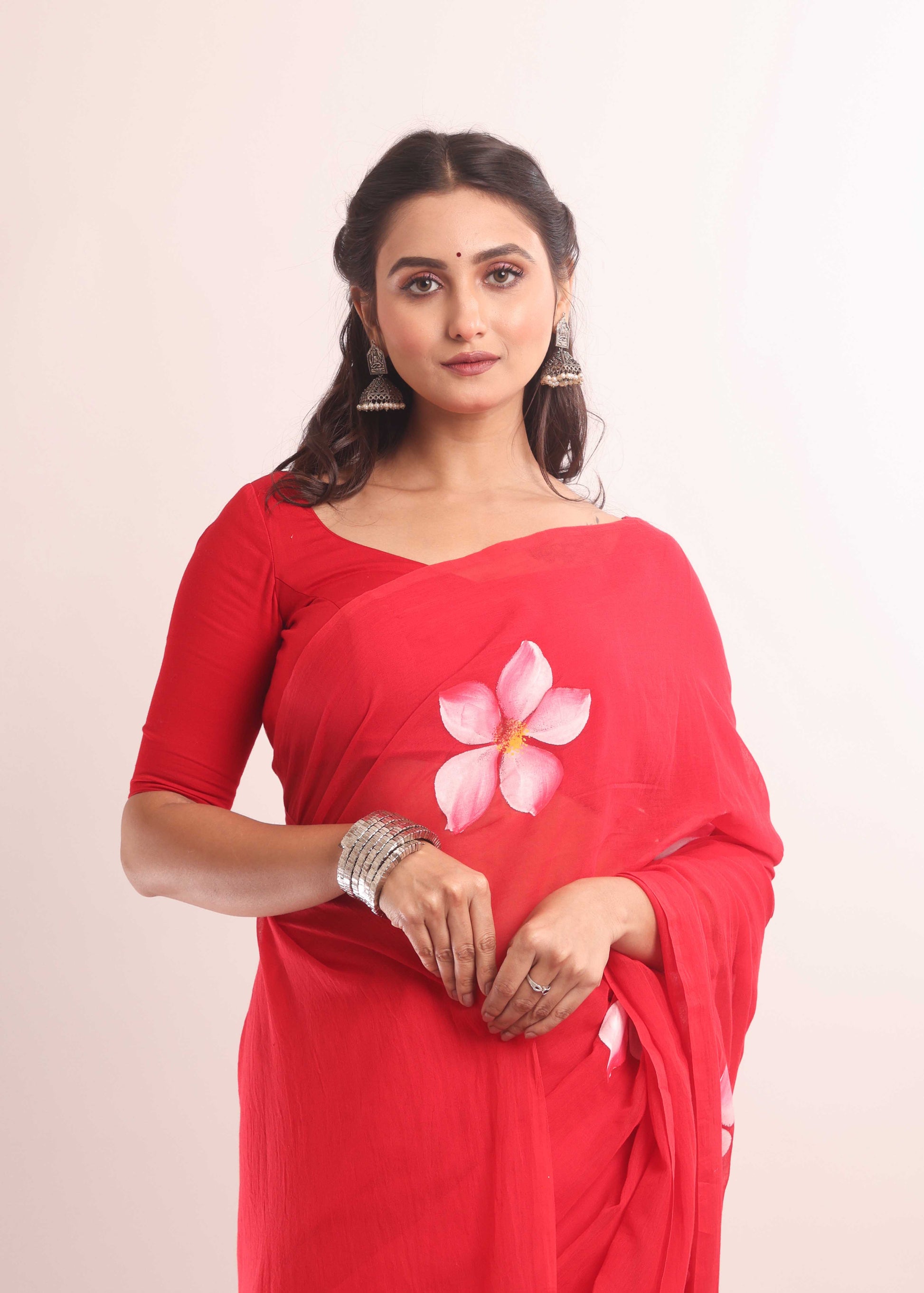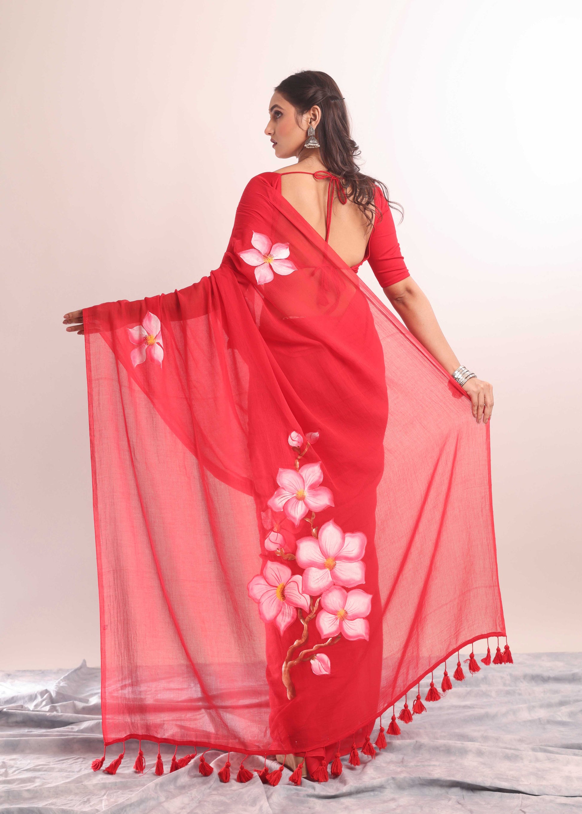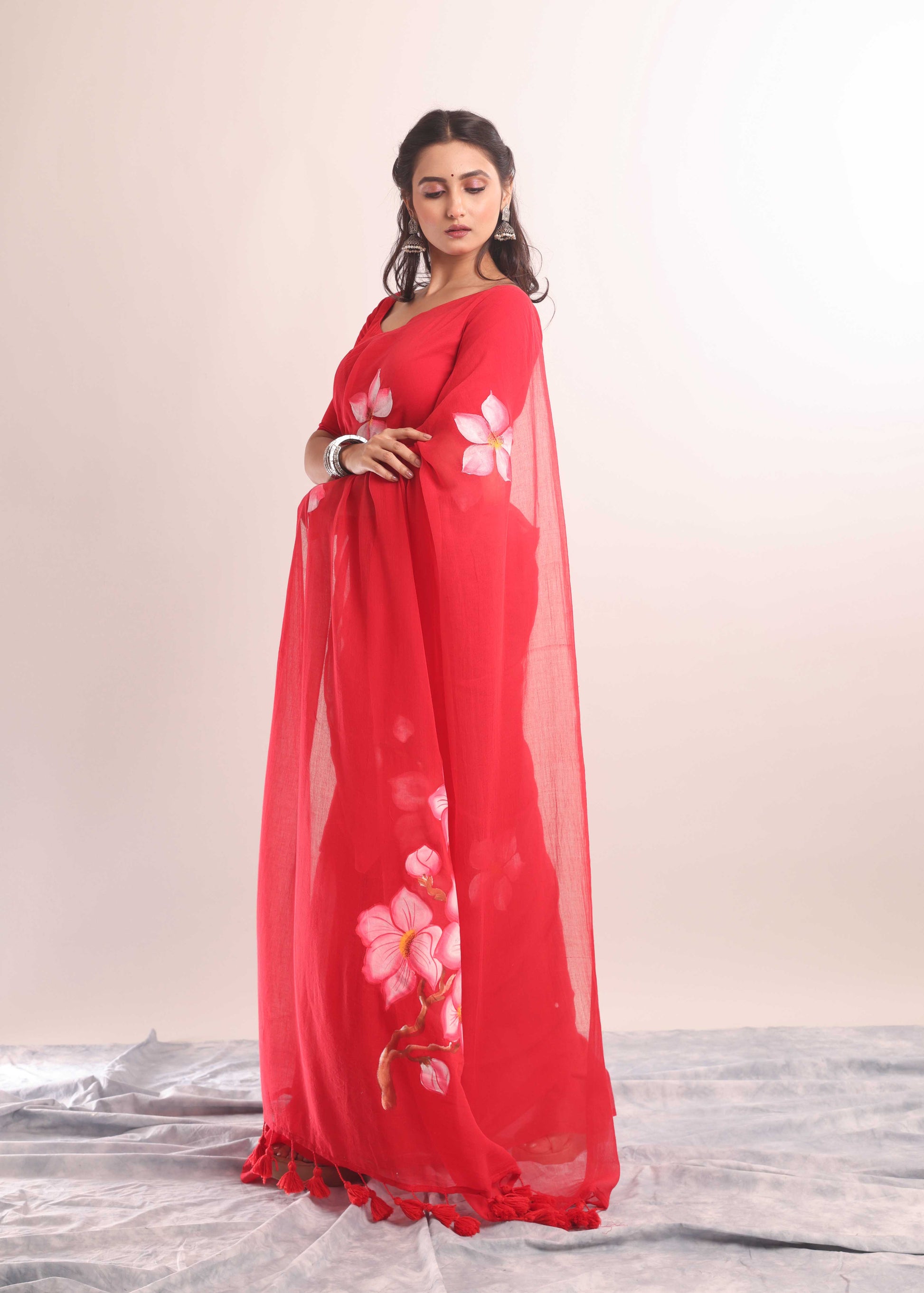 ◾️ DISCLAIMER: The variation of colors may appear slightly different due to lighting conditions during photoshoot. This saree is hand-painted/Embroidered; slight irregularities or brushstroke variations are not defects but rather marks of true craftsmanship.