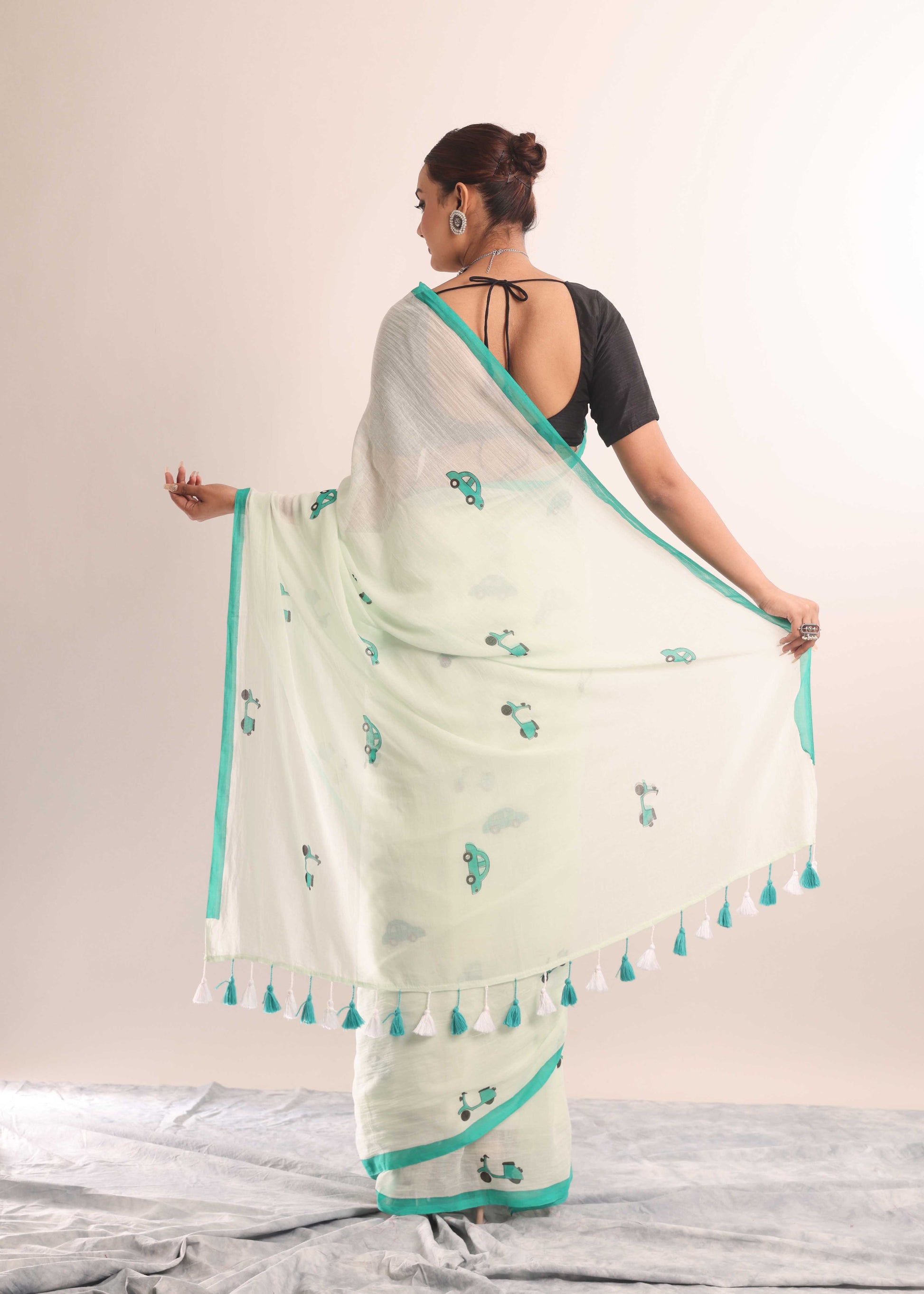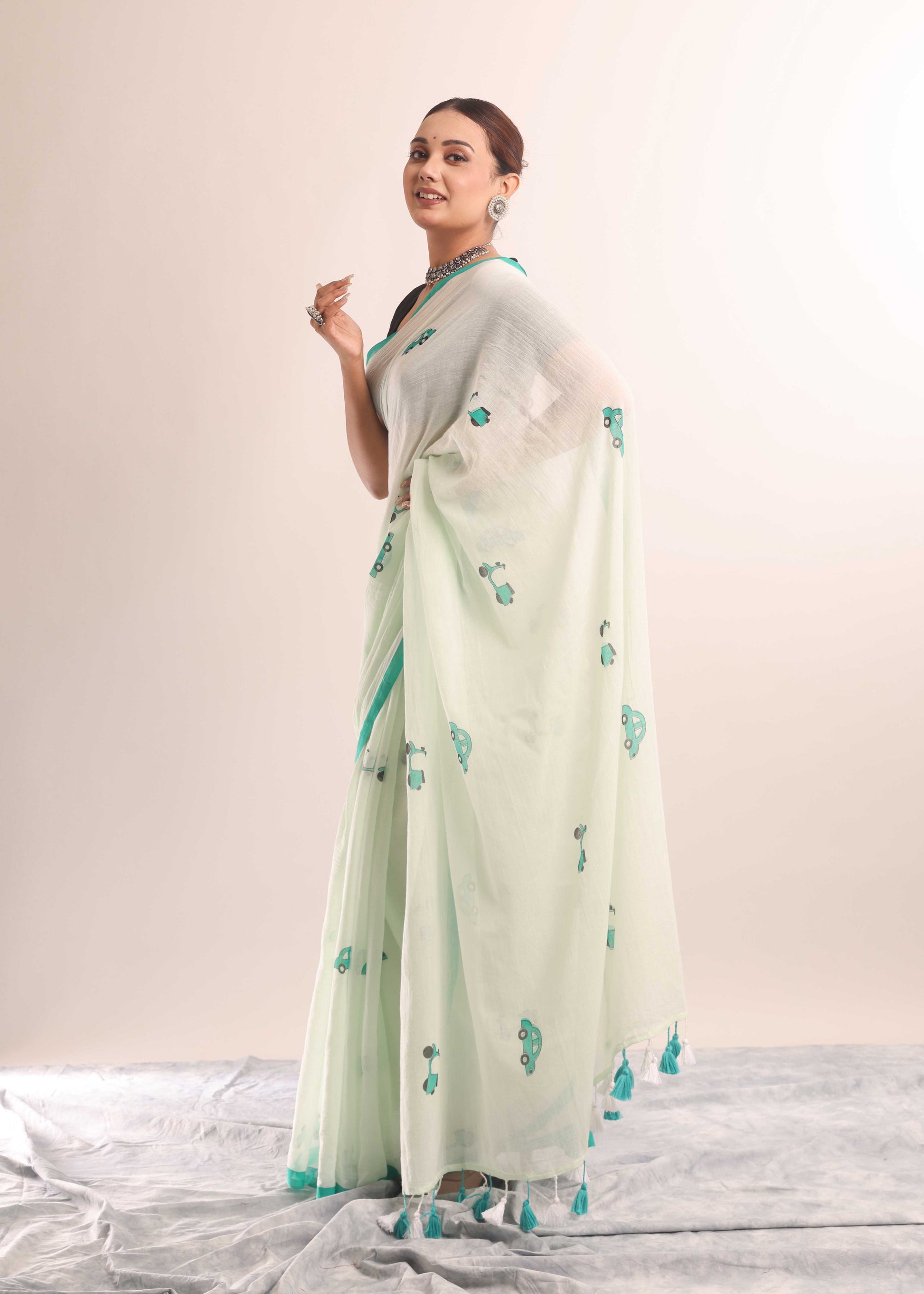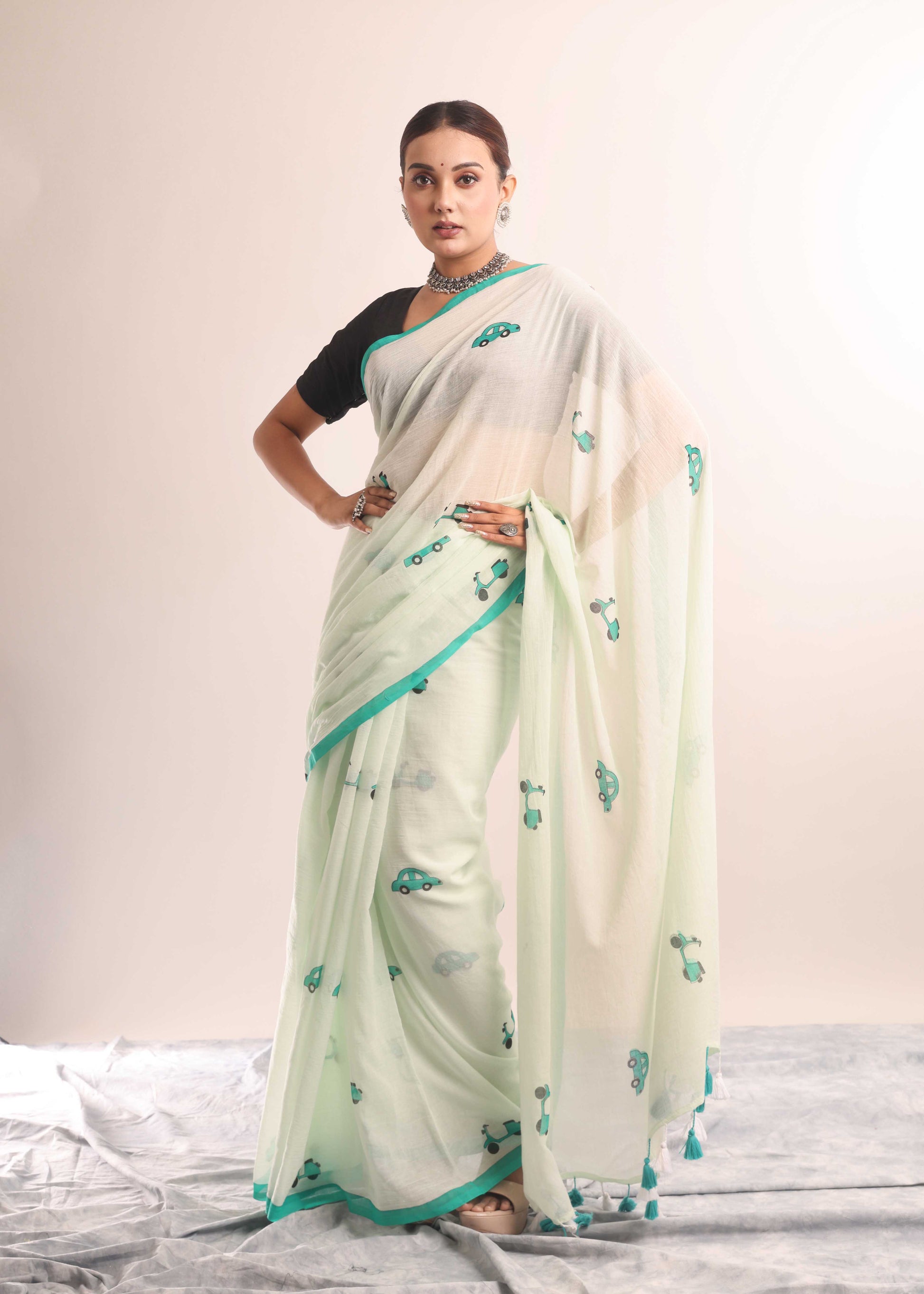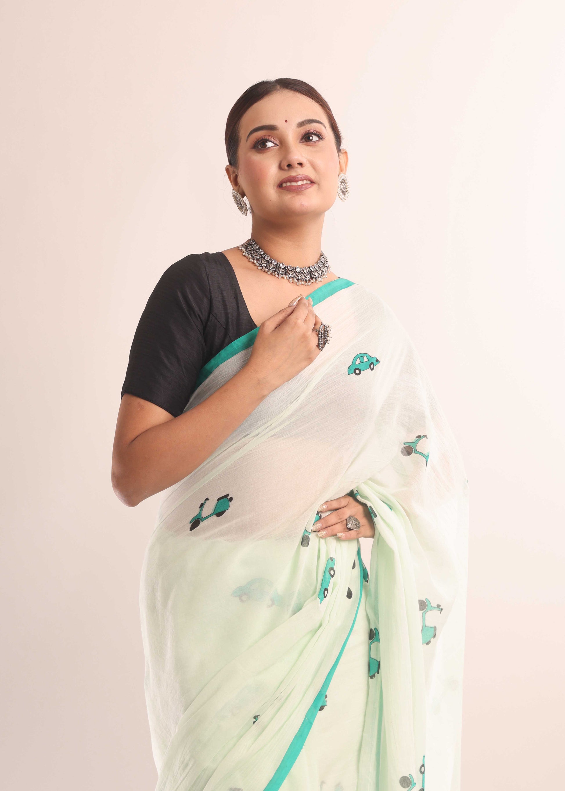 Float through your day in the sheer softness of Shaaj Calcutta’s mulmul cotton saree. Crafted from the softest cotton, this drape is feather-light on the skin and adorned with hand-drawn artistry that speaks of quiet elegance and soul. Perfect for brunches, poetry walks, or simply lounging in style.