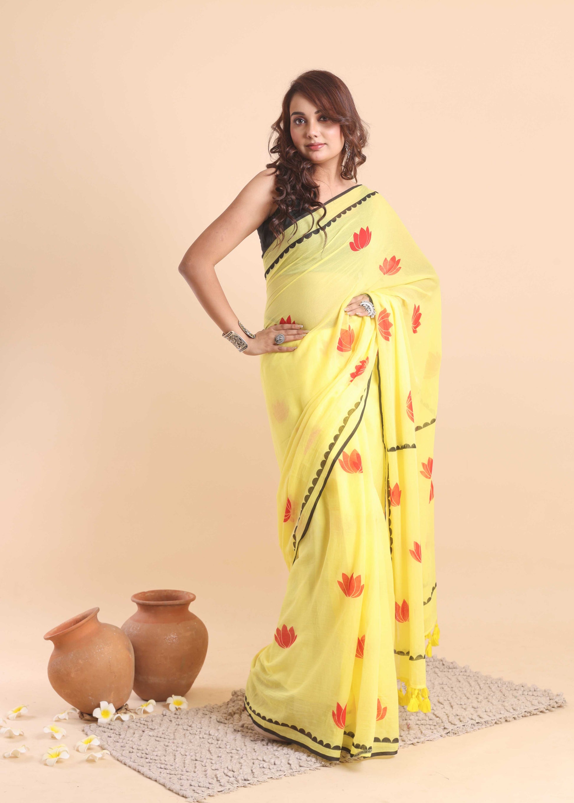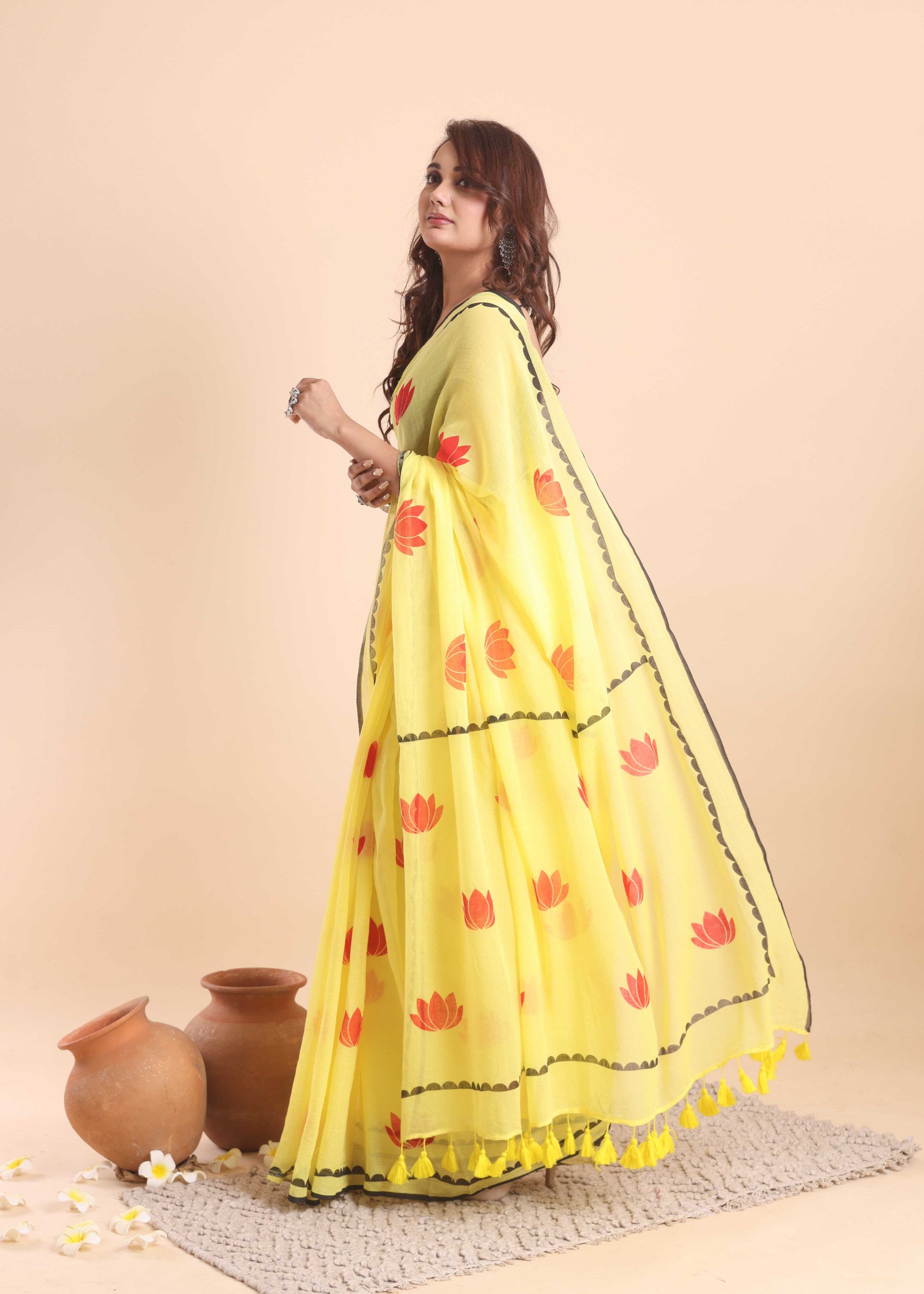 ◾️ DISCLAIMER: The variation of colors may appear slightly different due to lighting conditions during photoshoot. This saree is hand-painted/Embroidered; slight irregularities or brushstroke variations are not defects but rather marks of true craftsmanship.