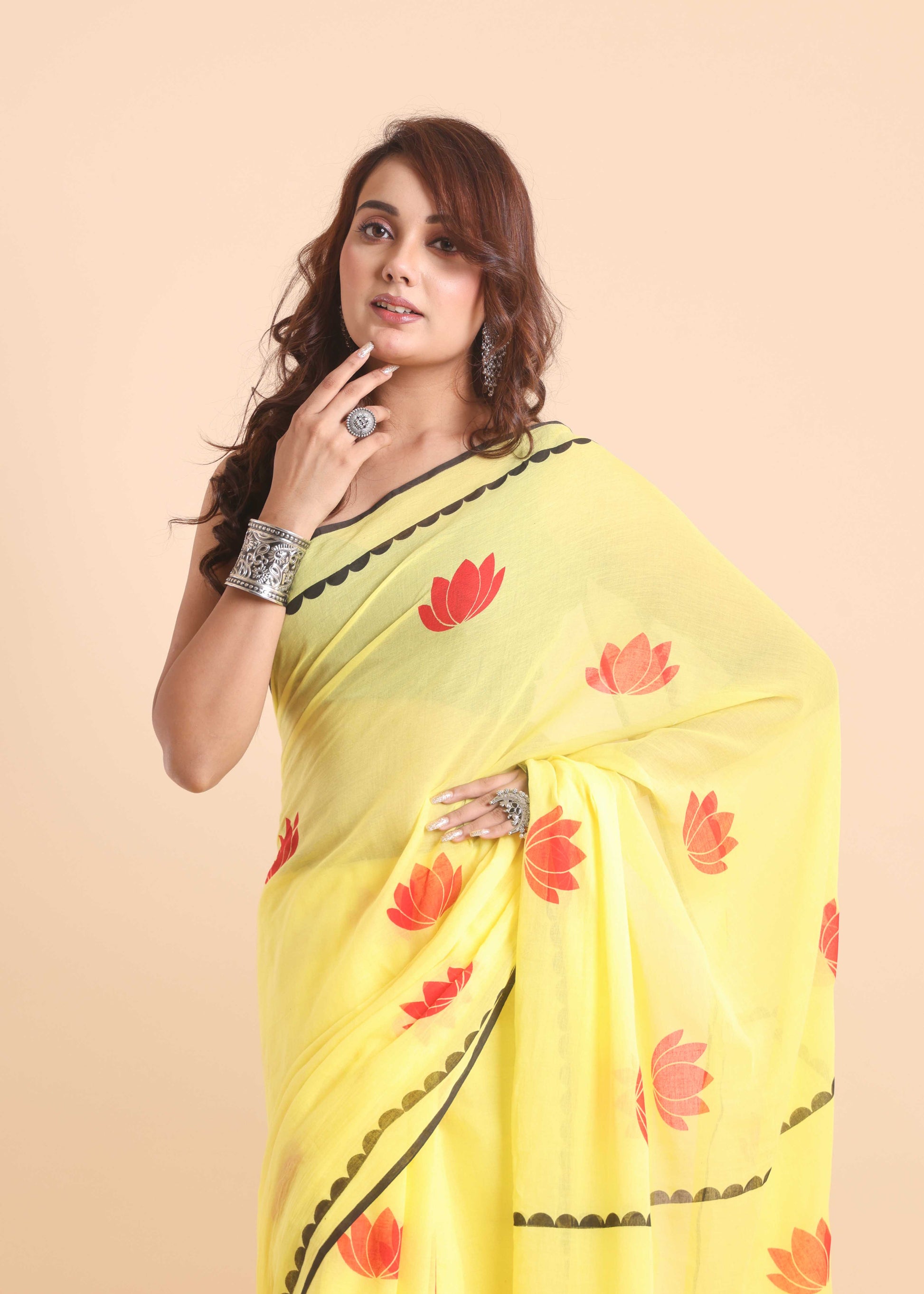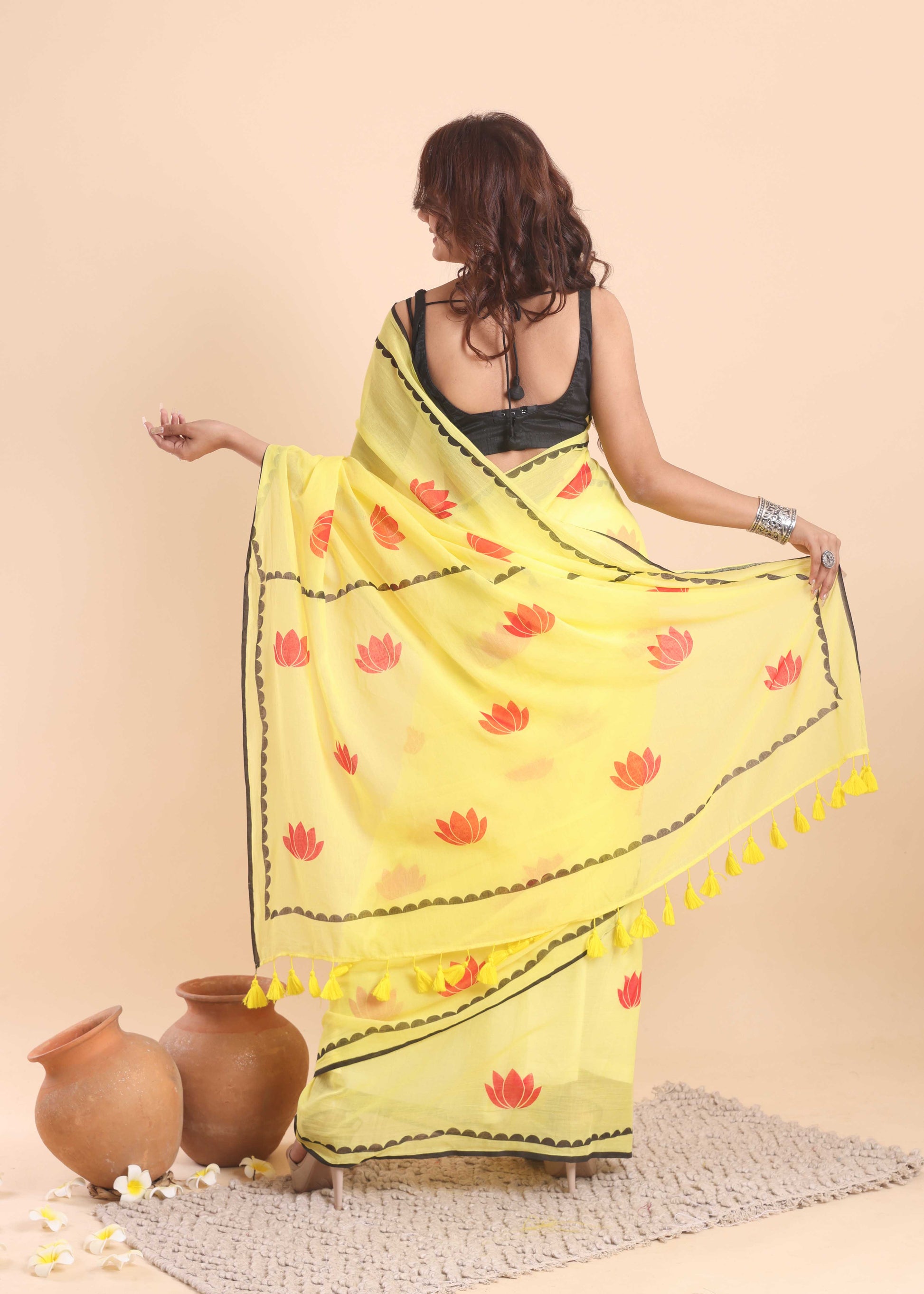 Float through your day in the sheer softness of Shaaj Calcutta’s mulmul cotton saree. Crafted from the softest cotton, this drape is feather-light on the skin and adorned with hand-drawn artistry that speaks of quiet elegance and soul. Perfect for brunches, poetry walks, or simply lounging in style.