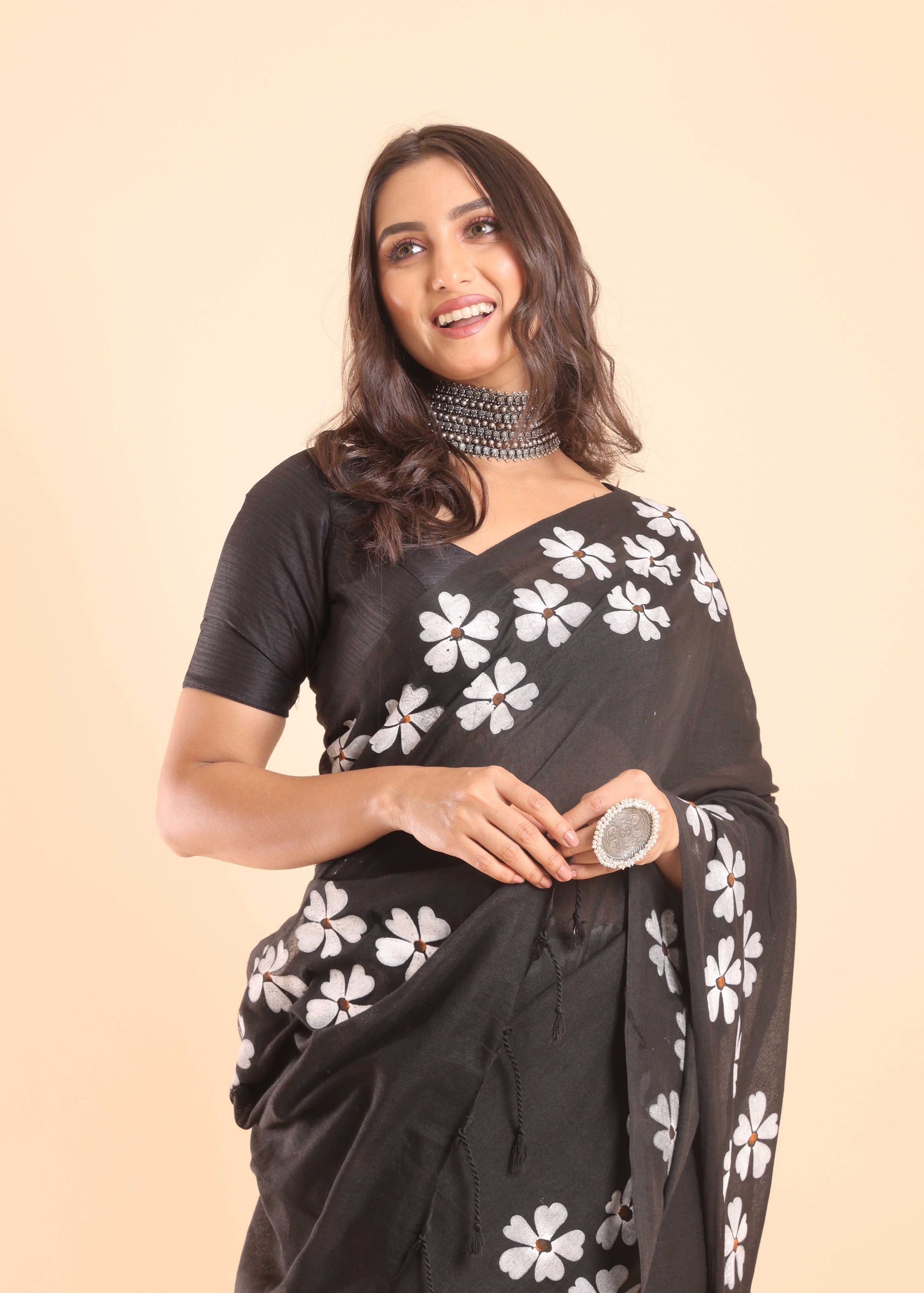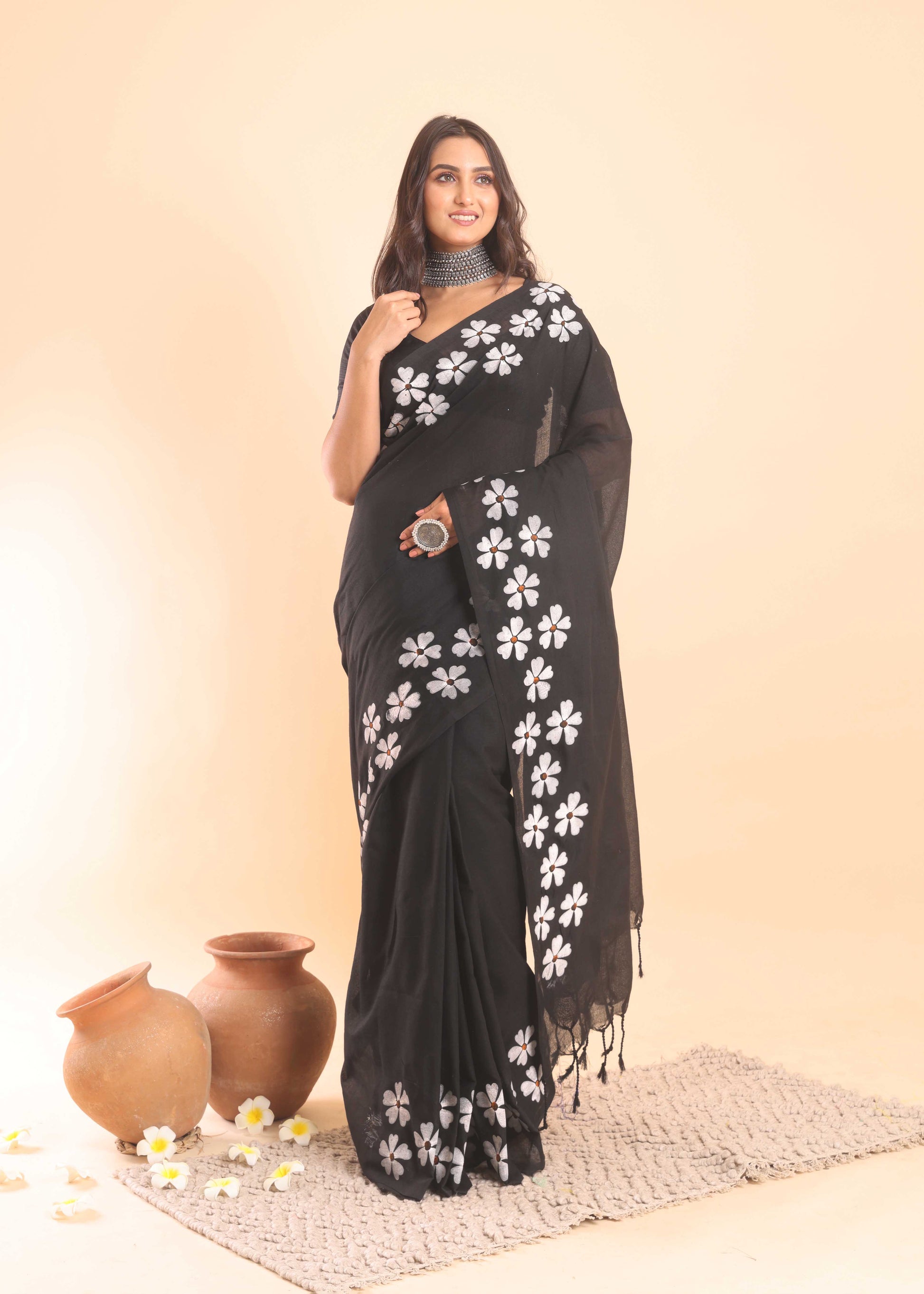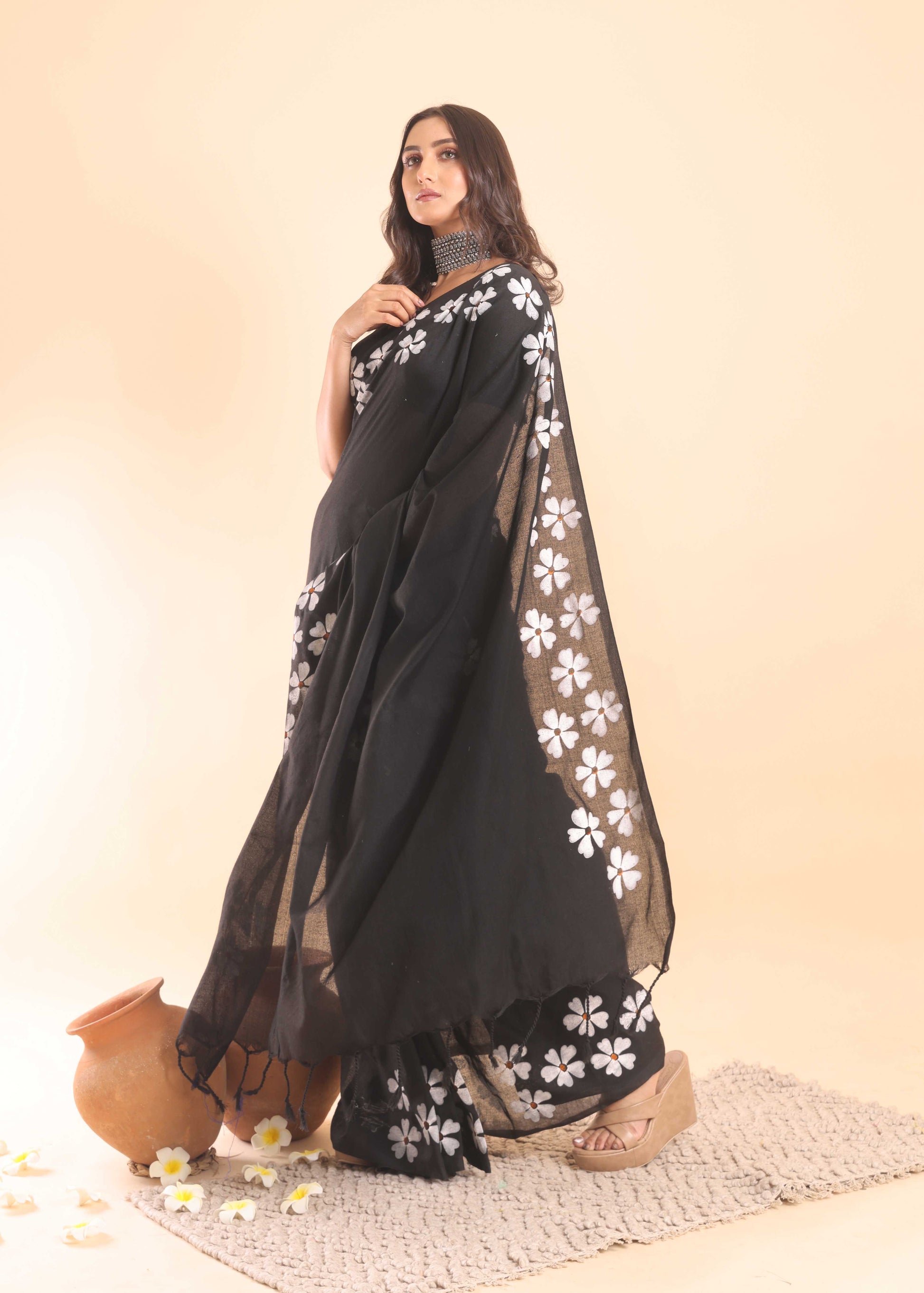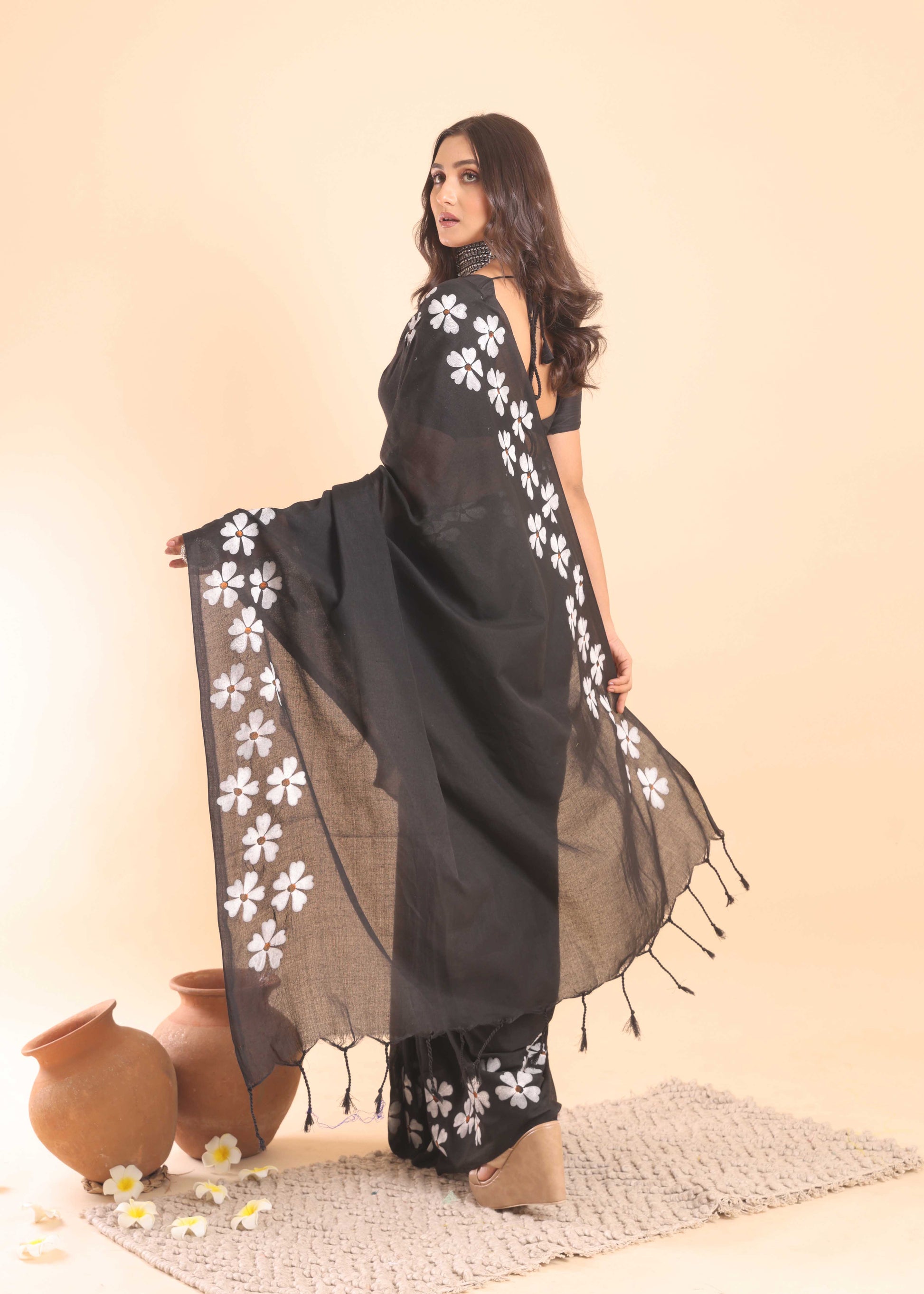 ◾️ DISCLAIMER: The variation of colors may appear slightly different due to lighting conditions during photoshoot. This saree is hand-painted/Embroidered; slight irregularities or brushstroke variations are not defects but rather marks of true craftsmanship.