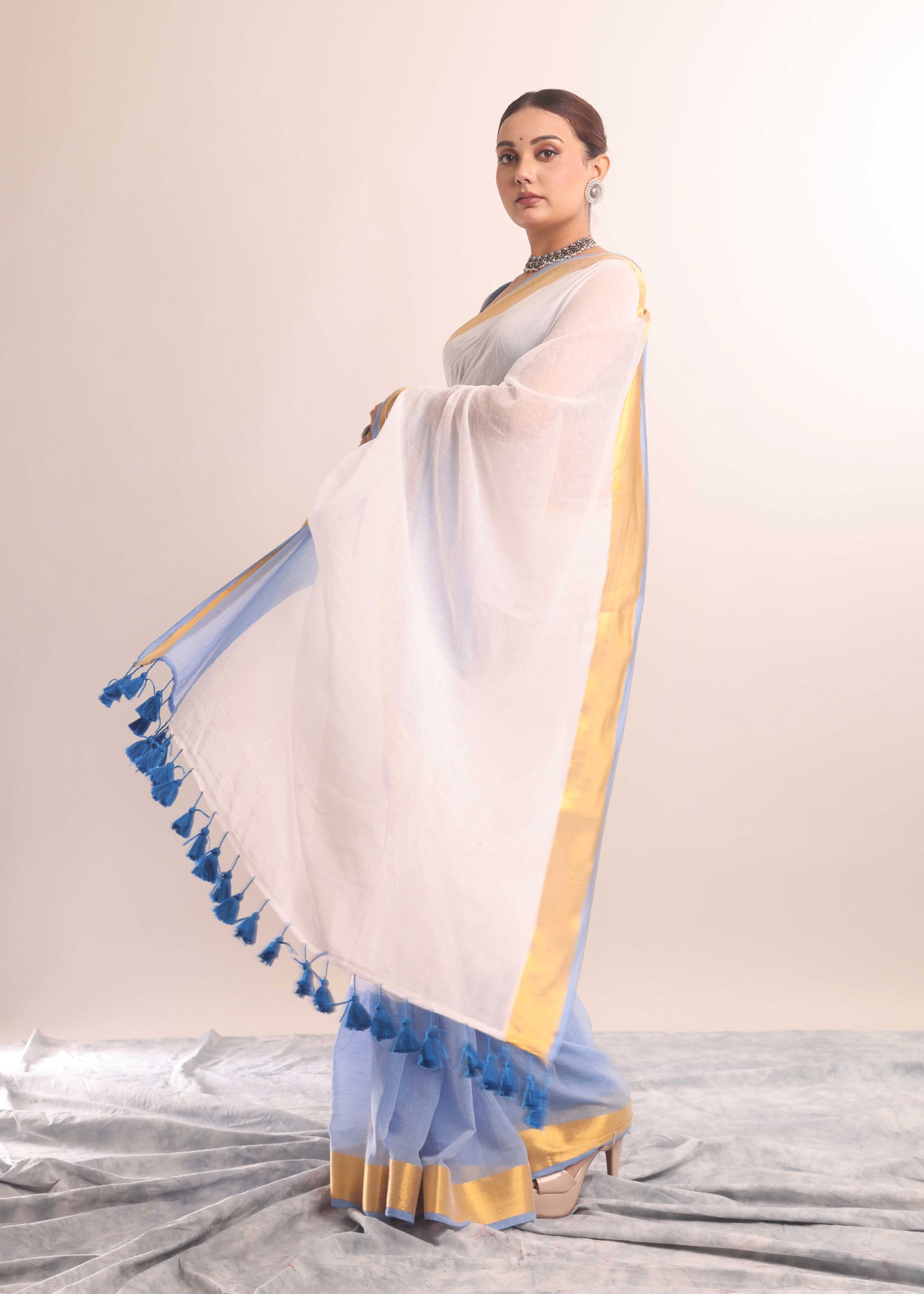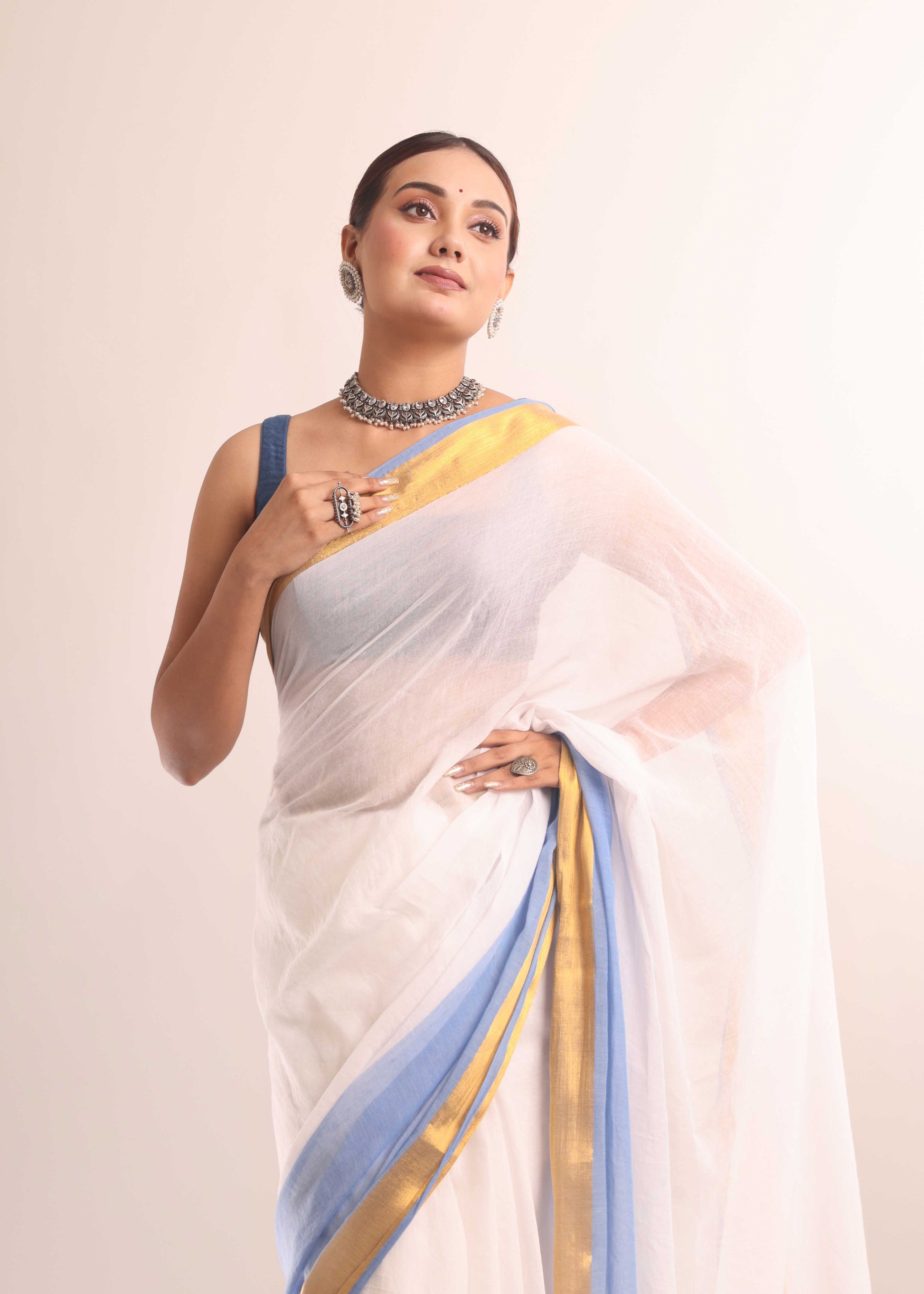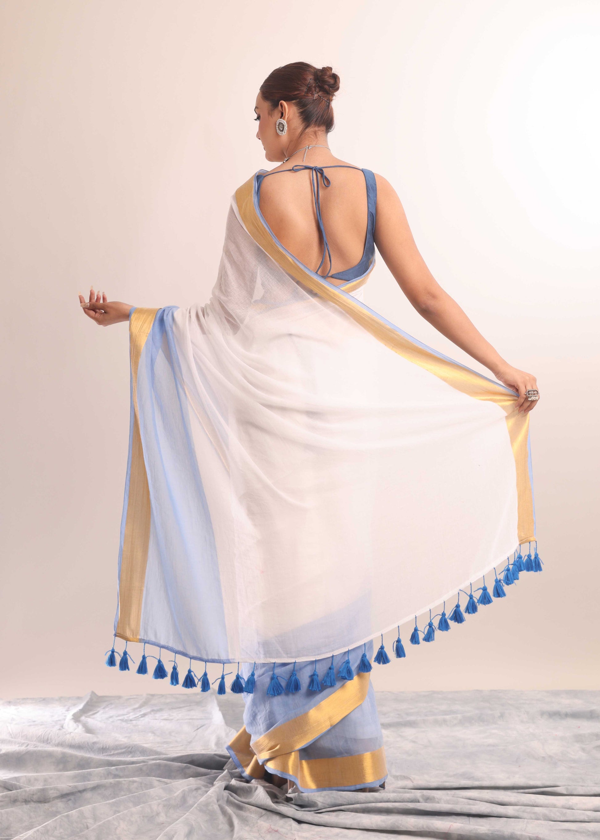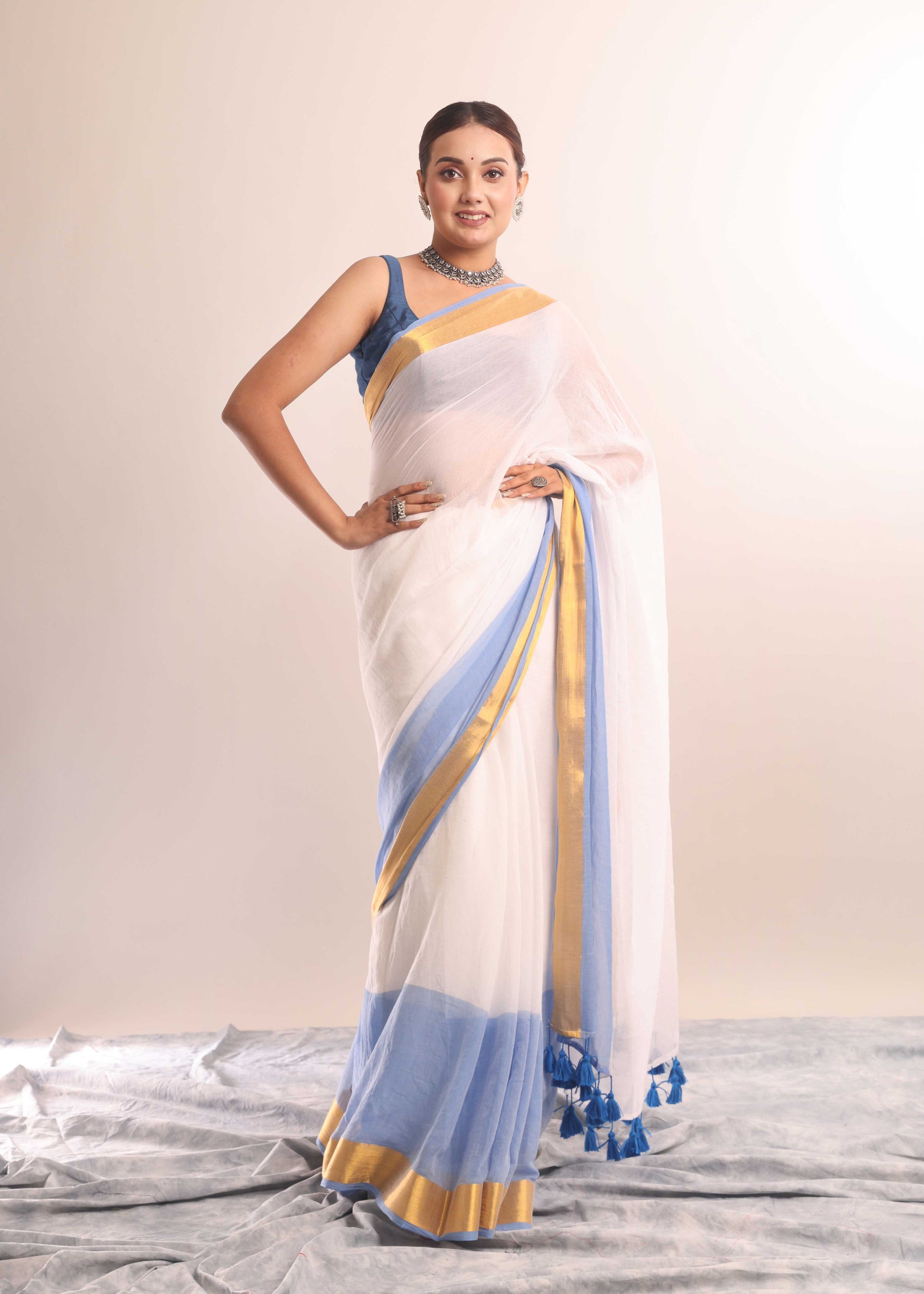 Float through your day in the sheer softness of Shaaj Calcutta’s mulmul cotton saree. Crafted from the softest cotton, this drape is feather-light on the skin and adorned with hand-drawn artistry that speaks of quiet elegance and soul. Perfect for brunches, poetry walks, or simply lounging in style.