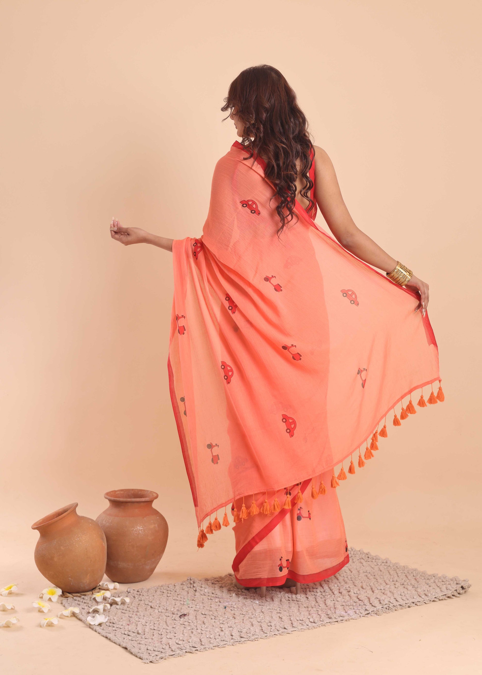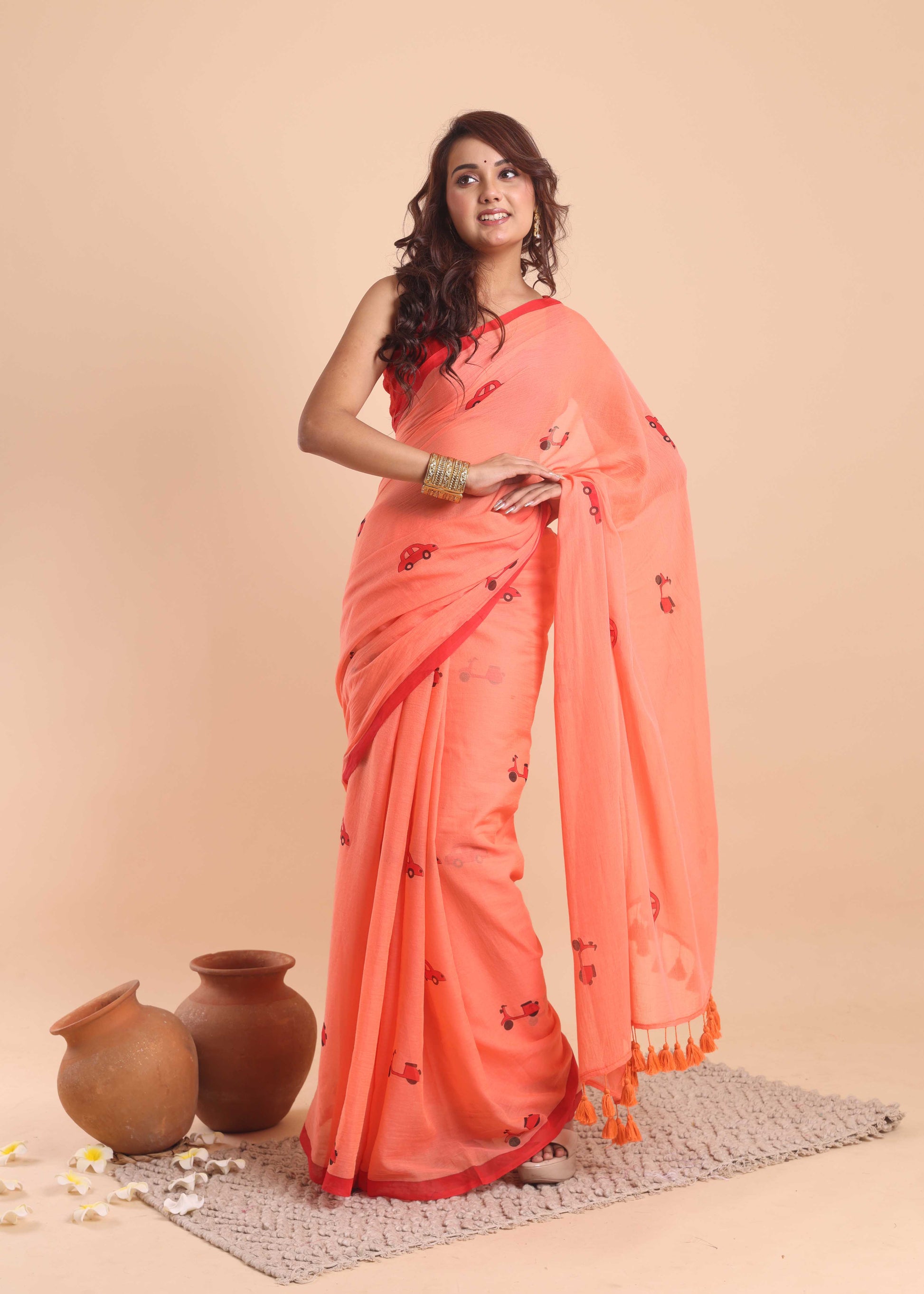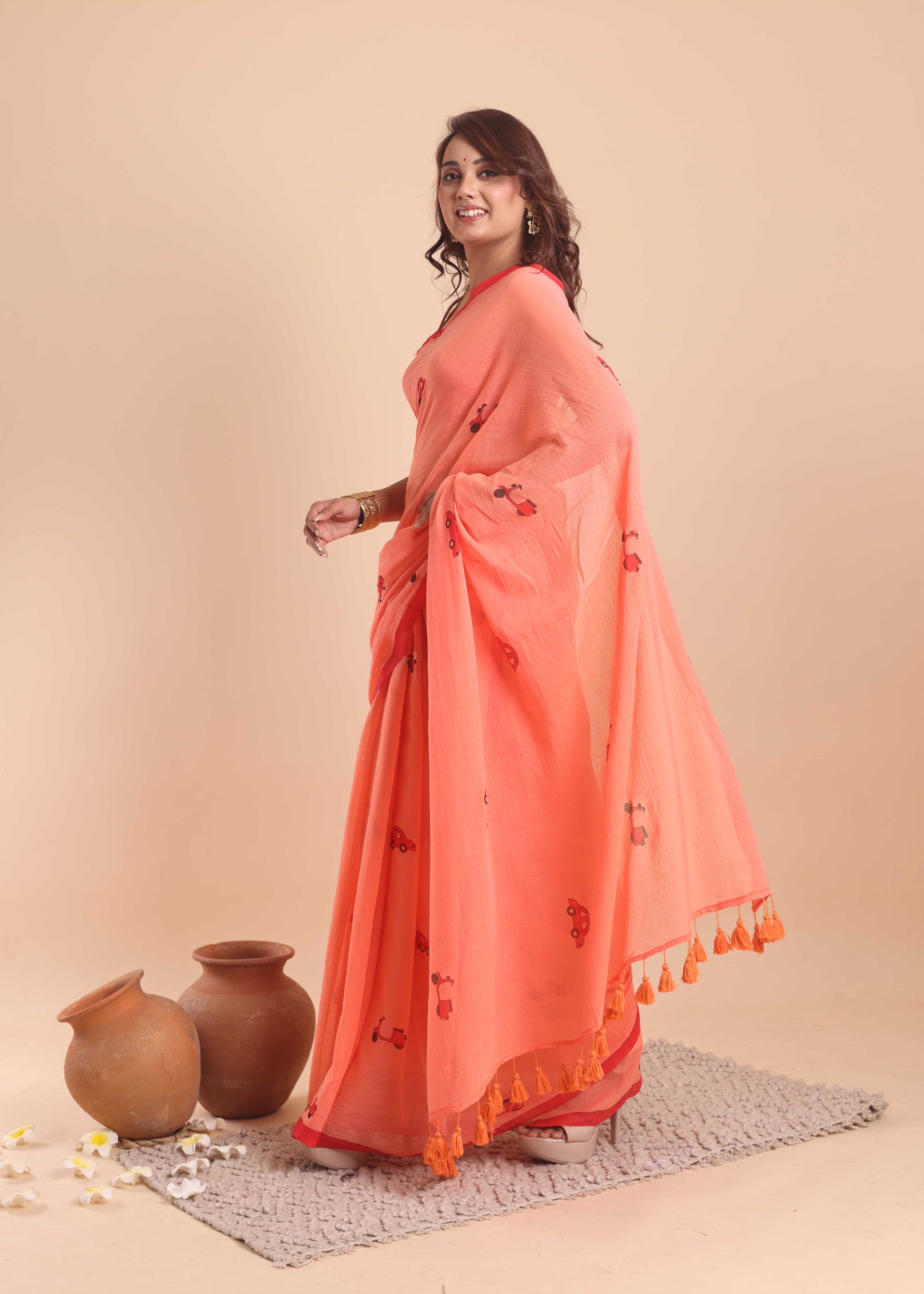 Float through your day in the sheer softness of Shaaj Calcutta’s mulmul cotton saree. Crafted from the softest cotton, this drape is feather-light on the skin and adorned with hand-drawn artistry that speaks of quiet elegance and soul. Perfect for brunches, poetry walks, or simply lounging in style.
