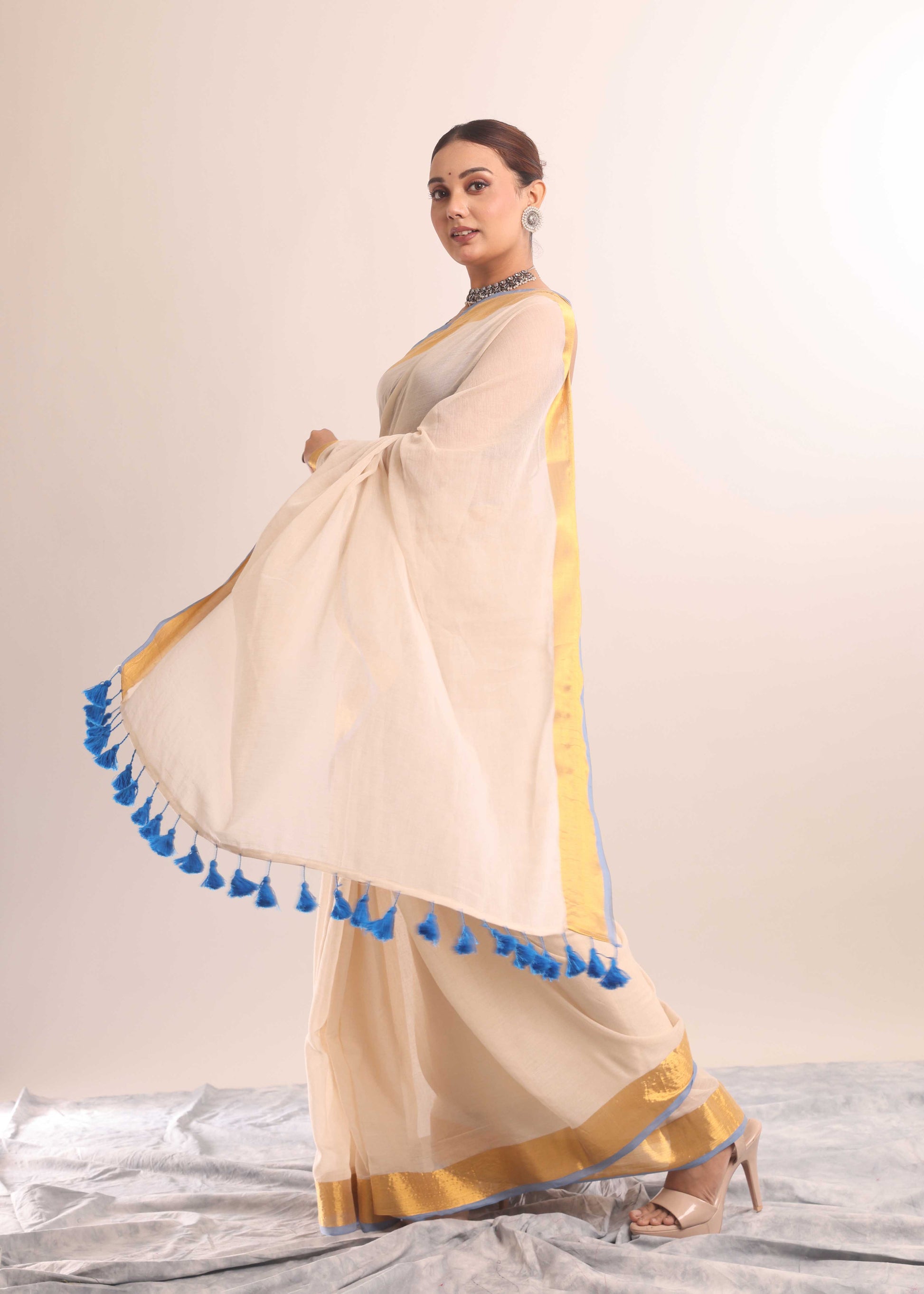 Float through your day in the sheer softness of Shaaj Calcutta’s mulmul cotton saree. Crafted from the softest cotton, this drape is feather-light on the skin and adorned with hand-drawn artistry that speaks of quiet elegance and soul. Perfect for brunches, poetry walks, or simply lounging in style.